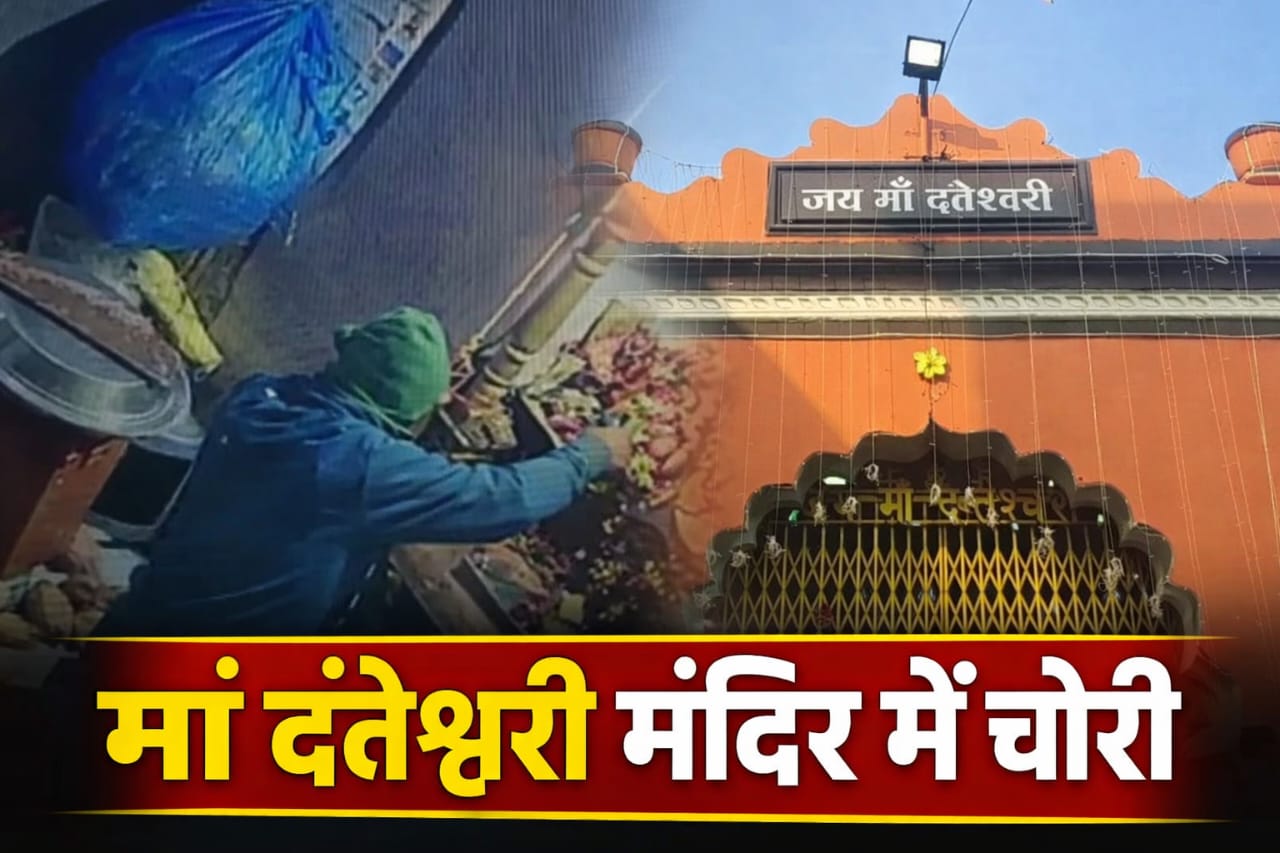 छत्तीसगढ़ के बस्तर जिले के जगदलपुर में स्थित मां दंतेश्वरी मंदिर में देर रात चोरी की घटना सामने आई है। अज्ञात चोर मंदिर के पीछे वाले दरवाजे का ताला तोड़कर अंदर घुसा और देवी प्रतिमा पर चढ़े सोने-चांदी के कीमती आभूषण चोरी कर लिए। चोरी गए आभूषणों की कीमत लाखों रुपये बताई जा रही है।